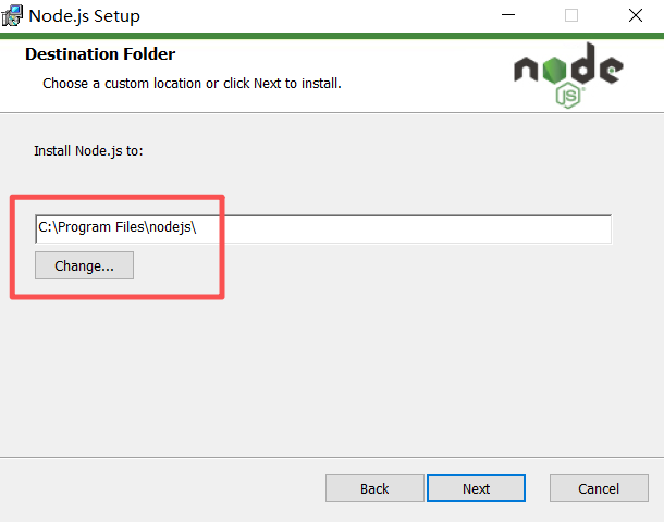 选择安装目录,默认目录C:\Program Files\nodejs: