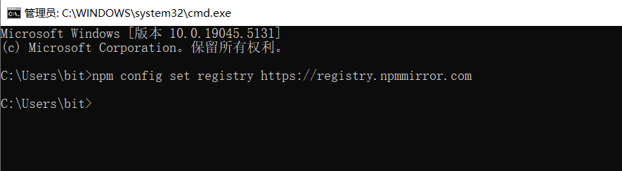 因为npm包管理器默认的源地址为国外服务器,访问速度很慢,所以需要将源地址切换到国内,输入下面命令将npm源切换到npmmirror镜像站: