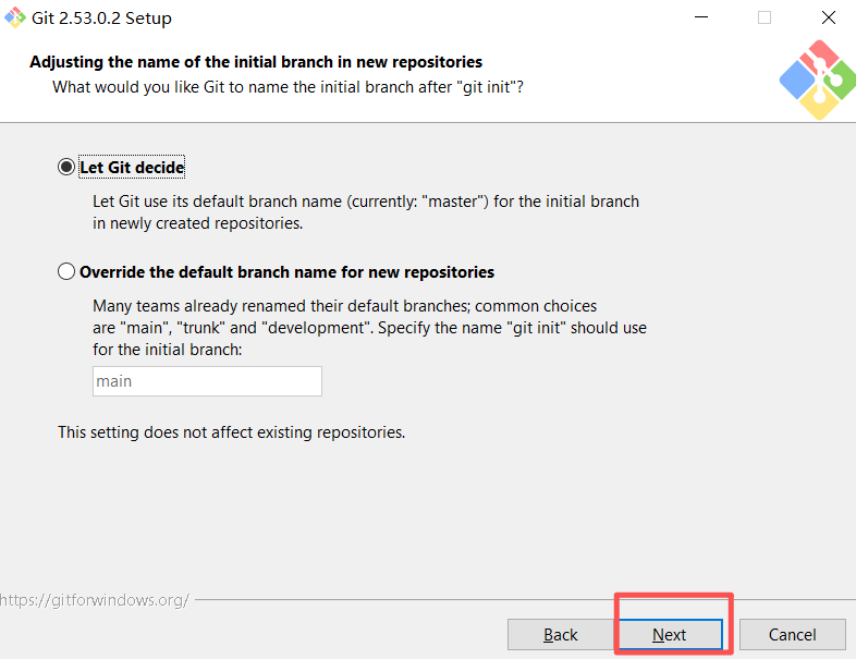 设置初始分支名称: