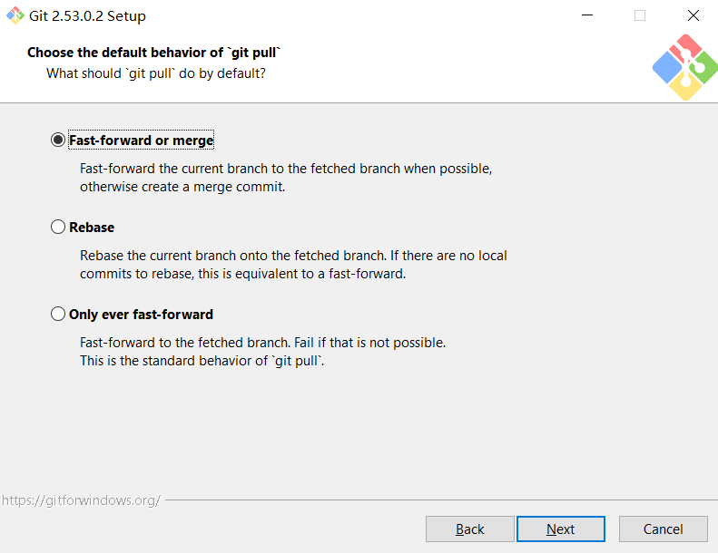 选择git pull默认行为: