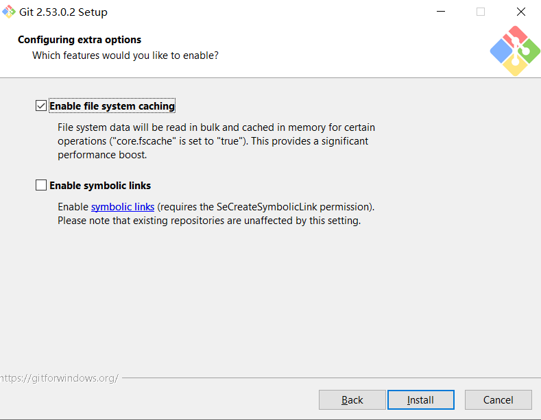 配置选择完成后点击Install安装Git: