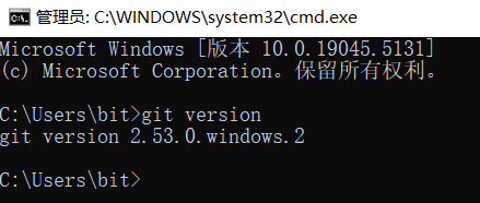 安装完成后打开dos窗口,输入git version命令,检查Git是否安装成功: