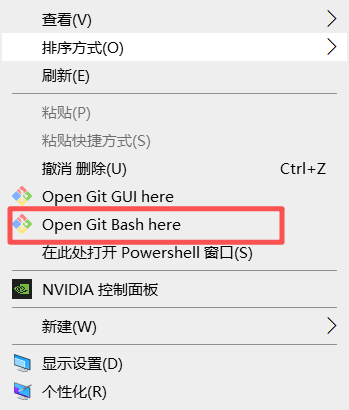 鼠标右键打开Git命令行: