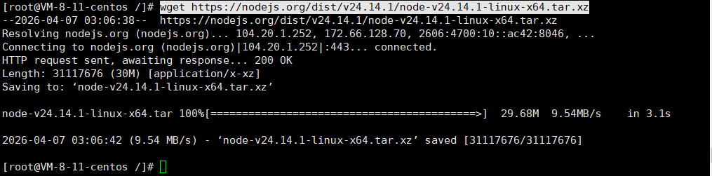 wget https://nodejs.org/dist/v24.14.1/node-v24.14.1-linux-x64.tar.xz