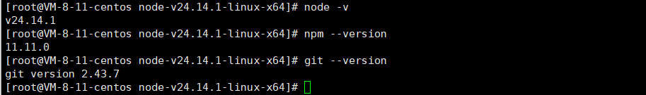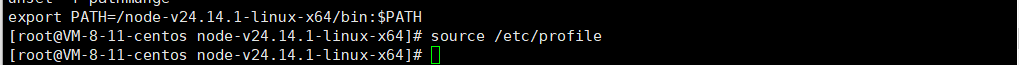 export PATH=/node-v24.14.1-linux-x64/bin:$PATH 重新加载环境变量: