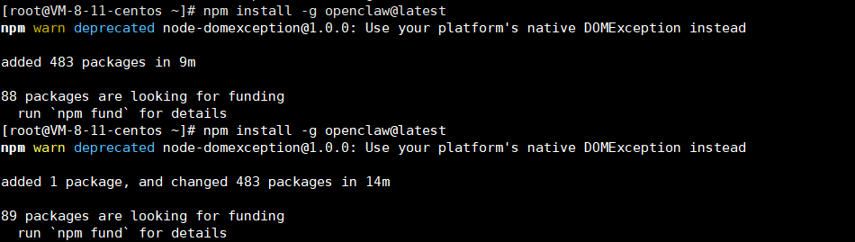 依赖安装完成,就可以开始通过npm安装OpenClaw了。我们在命令行输入下面命令安装:
