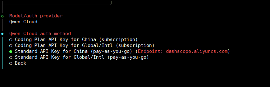 选择大模型接入模式,因为我们没有订阅coding包月计划,所以选择标准模式: