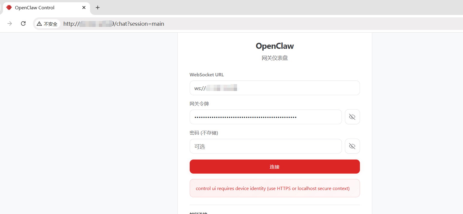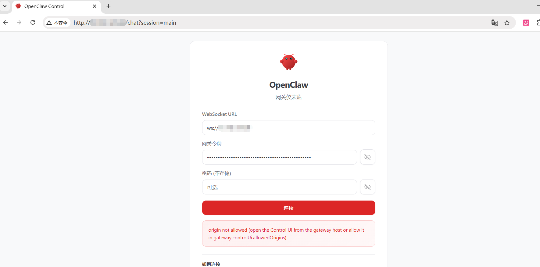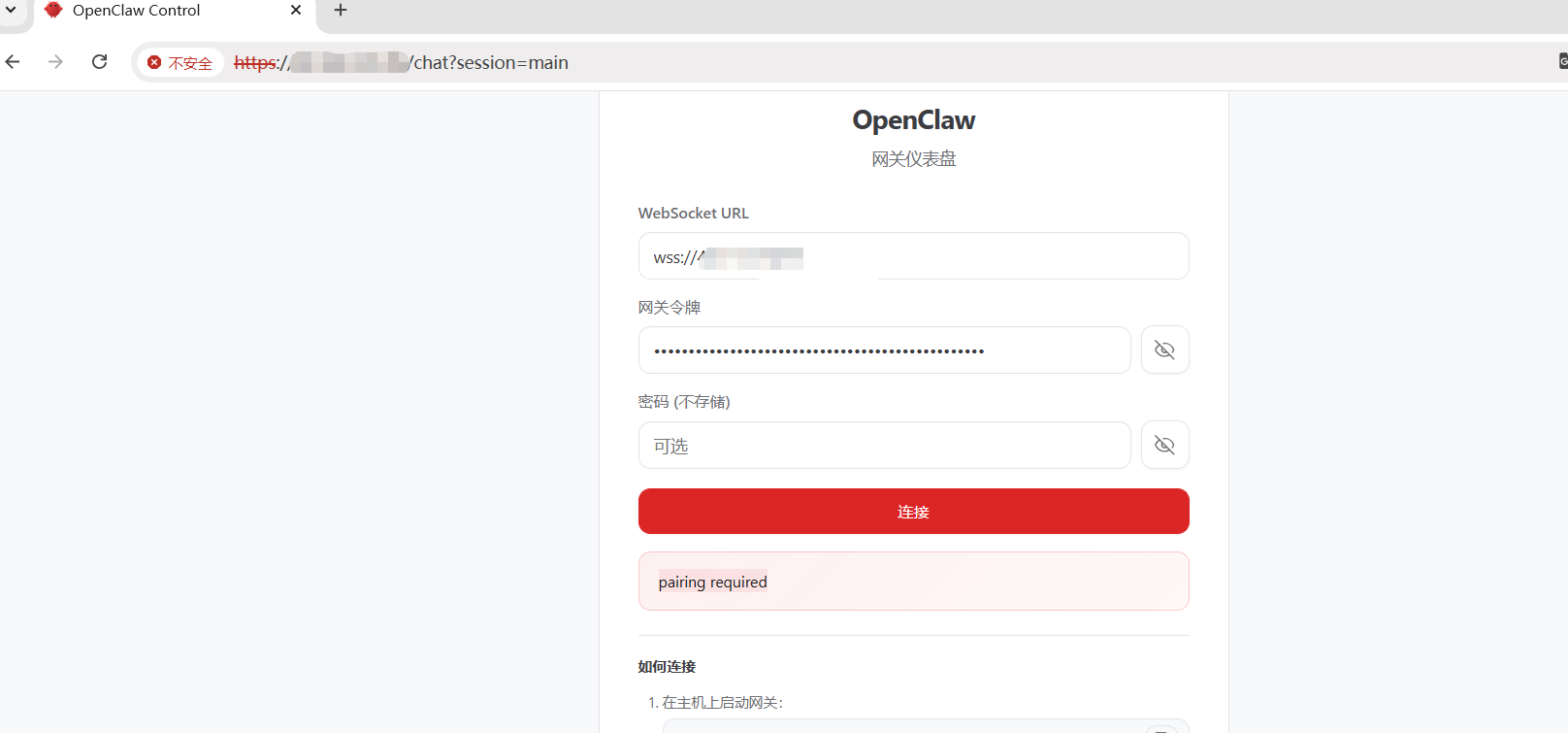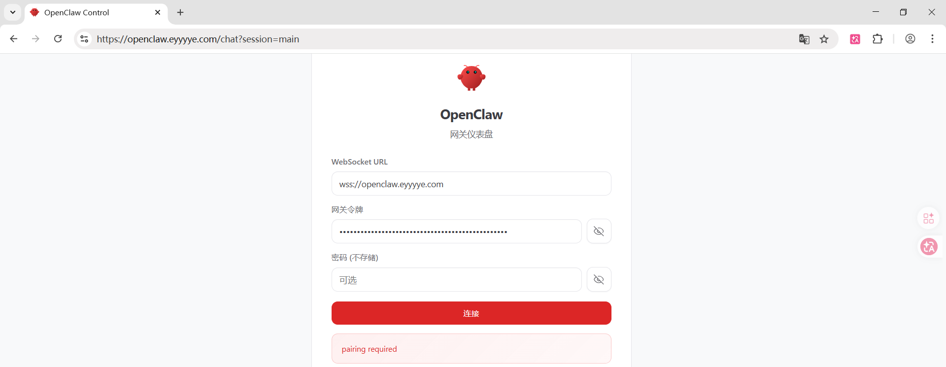 systemctl start nginx 现在可以在本地通过浏览器访问服务器的公网IP来访问OpenClaw的web页面了: