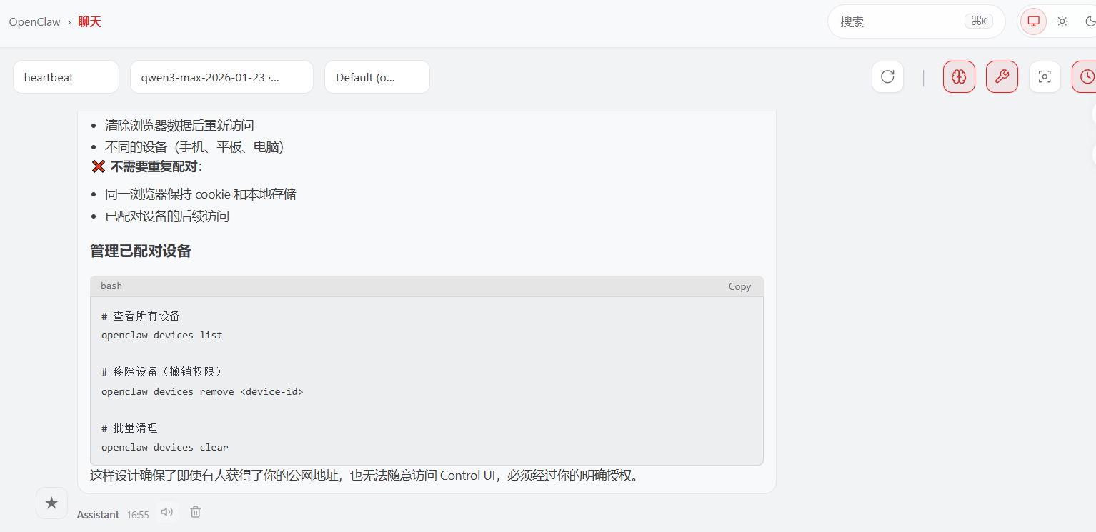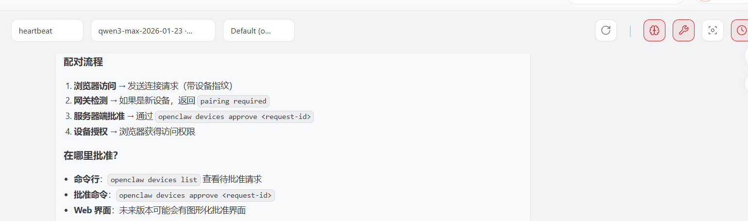 上面的web页面我们看到不允许访问,我们让OpenClaw帮忙处理下: