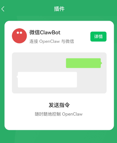 我们在手机微信中进入【我】->【设置】->【插件】,可以看到ClawBot: