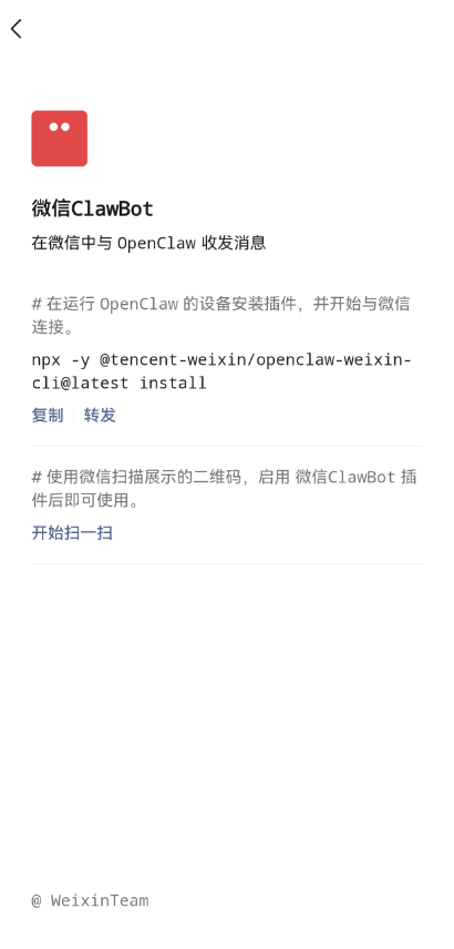 微信ClawBot机器人开源地址:https://www.npmjs.com/package/@tencent-weixin/openclaw-weixin