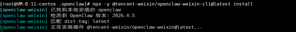 npx -y @tencent-weixin/openclaw-weixin-cli@latest install
