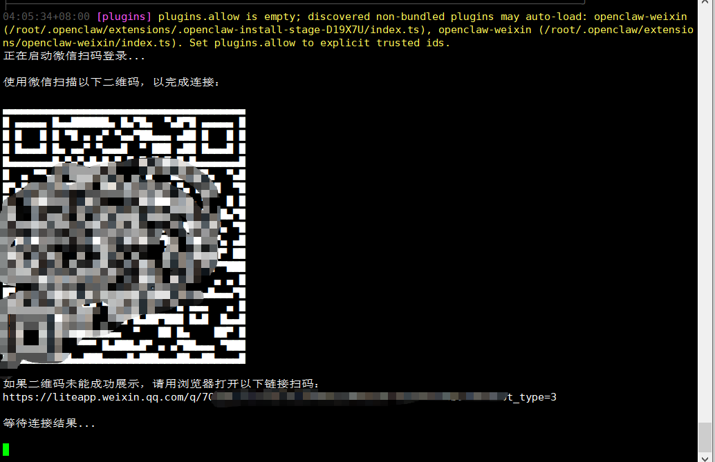 启用完成后通过下面命令调出微信ClawBot登录二维码:
